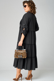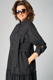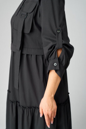 Черное платье с воротником стойка и асимметричной застежкой из текстиля EVA GRANT 7176В черный - фото 10