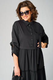 Черное платье с воротником стойка и асимметричной застежкой из текстиля EVA GRANT 7176В черный - фото 13