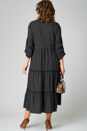 Черное платье с воротником стойка и асимметричной застежкой из текстиля EVA GRANT 7176В черный - фото 3
