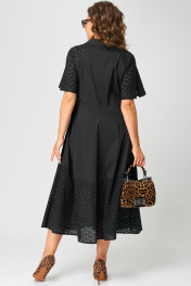 Платье женское стильное нарядное повседневное выполнено из хорошего красивого хлопка в сочетании с шитьем. Вырез горловины отложной воротник, застежка доверху на обметанные петли и пуговицы. Рукав реглан из отделочной ткани (шитье), по центру рукава обработан разрез. Платье отрезное по талии, подрез фигурный по полочке и спинке, придает модели элегантный приталенный вид. Волан по низу платья из отделоной ткани (шитье). Декором служат отделочные пуговицы.