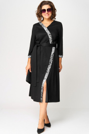 Плате женское повседневное полуприлегающего силуэта вполнено из трикотажного полотна в сочетании с отделкой. Вырез горловины V-образный на обтачке. Рукав втачной 7/8 по низу на пританой манжете из отделоной ткани. По переду патье с выточками и отрезными ассиметричными элементами из отделочной ткани. По центру платья обработан небольшо разрез. Декором платья служит съемный пояс из основной ткани. 50 52 54 56 58 60 125 125 125 127 127 127 104 108 112 116 120 124 96 100 104 108 112 116 118 122 126 130 134 138 22 22 22 22 22 22
