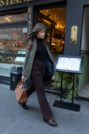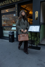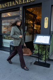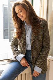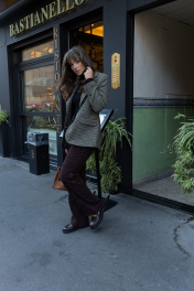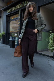 В этом сезоне осень-зима‘23 классическая клетка растеряла свою чопорность за счет мелкой зеленой клетки: этим мотивом украсили однобортный приталенный жакет. Для создания модели мастера бренда ‘EZER использовали легкий материал на основе не мнущейся поливискозы, так же этот состав защищают от появления пиллей (катышек). Такая модель из осенне-зимней коллекции успешно справляется с многозадачностью, одинаково хорошо рифмуясь и с узкими брюками, с юбкой, отлично сочетается с любыми джинсами. Богатые лаковые пуговицы придают особый английский стиль.