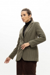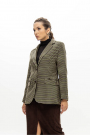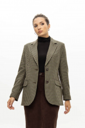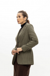 Приталенный жакет из легкого текстиля с зеленой мелкой клеткой EZER 1007 зеленый