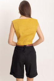 Прекрасный, нежнейший лен. Эти прекрасные шорты - идеальный концепт для летнего гардероба. Удобные и комфортные даже в самый жаркий день! Удобная длина позволяет носить их в офис, соблюдая дресс-код. Также шорты можно сочетать с майками, топами, футболками, рубашками, пиджаками, жилетами. Верхний срез шорт обработан притачным поясом с отрезными шлёвками, мягкие складки отлично скроют недостатки фигуры, сделают силуэт стройным, имеется пуговица из материала «кокос». Передние части шорт с отрезными боковыми карманами. Премиальный качественный лен не просвечивает и не портится от стирок.