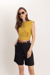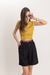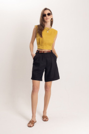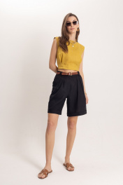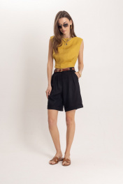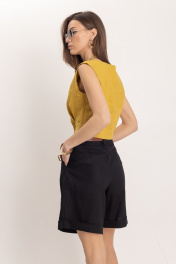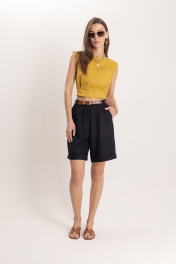 Черные летние леновые шорты с притачным поясом EZER 1301