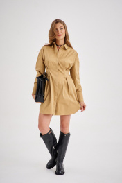 Платье-рубашка классическая из хлопка с длинными рукавами EZER 1504 бежевый