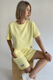 Летний костюм из трикотажа и хлопка с шортами Faldas ФС-20.164 жёлтый