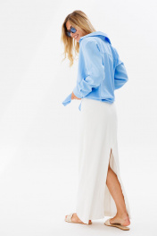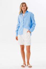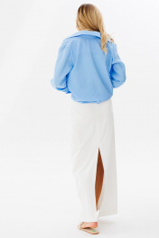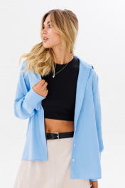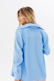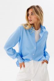 Рубашка насыщенного голубого цвета, выполнена в ткани из вискозы. Классическая рубашка со строгим кроем является неотъемлемой частью гардероба, входит в состав многих луков. Длина изделия 68 см