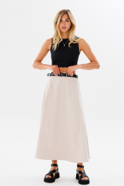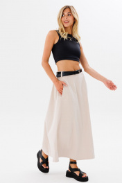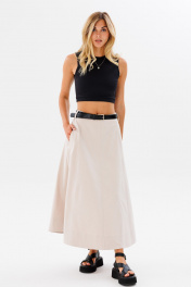 Юбка трапеция длинная из облегченного джинса для комфортных луков FAMA 24029 бежевый