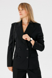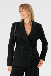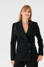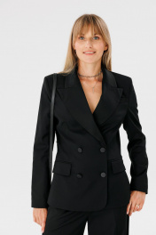 Деловой костюм 2-ка из поливискозы: жакет и брюки для работы FAMA 24052 чёрный