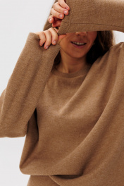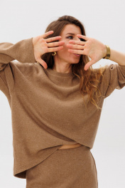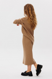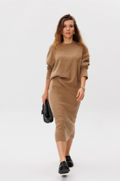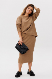 Демисезонный бежевый комплект из юбки миди и свитера прямого кроя FAMA 24068 бежевый