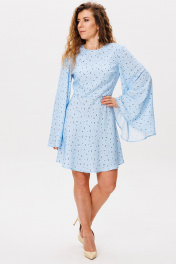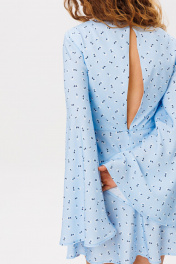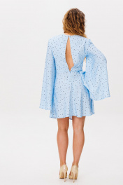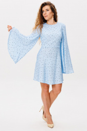 Элегантное женственное платье с разрезом на спине и расширенными рукавами, выполнено в ткани из поливискозы. Застежка на потайной молнии и пуговице. Длина изделия 90 см