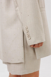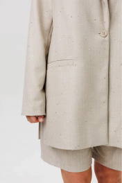Жакет с разрезами по бокам - стильный и оригинальный элемент гардероба, который добавит изюминку в ваш образ. Вискоза в составе придает ткани легкость, практичность в носке, терморегуляцию и комфорт. Отлично сочетается как с брюками, юбкой,сарафаном,платьем. Длина жакета 80 см