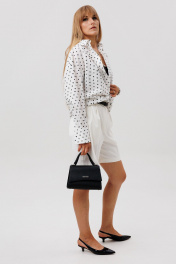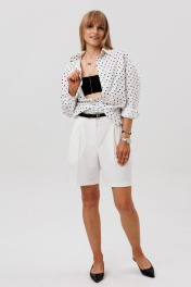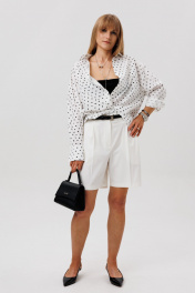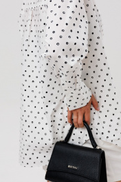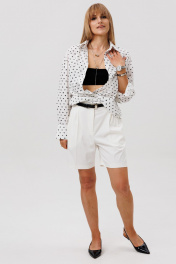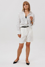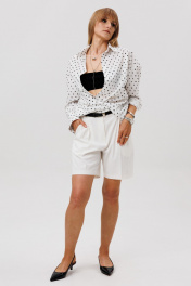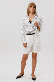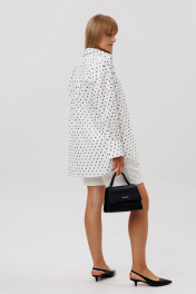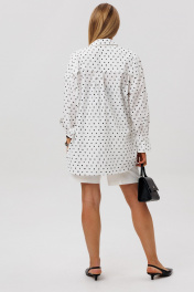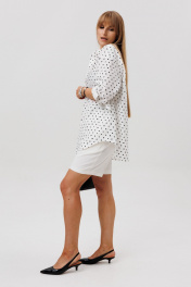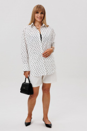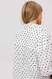 Рубашка прямого силуэта большого объёма, рукава с манжетами, плечо спущено. Исполнена в хлопковой ткани с оригинальным принтом, универсальная вещь в любом образе. Длина изделия 80см