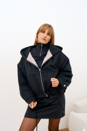 Стильный бомбер объемного кроя из плотной шерстяной ткани на утепленной подкладке - идеальный вариант для прохладной погоды. Изделие выполнено с капюшоном, застежка по центру на металлической молнии и регулируемой кулиской по низу, что позволяет менять силуэт и характер образа. Практичная и универсальная модель для городских образов. Длина изделия 66 см
