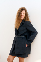 Жакет из тепловой пальтовой ткани с шерстью-мягкий,формоустойчивый и комфортный. Стильные разрезы по бокам добавляют динамики, а точная посадка создает стройный, гармоничный силуэт. Длина изделия 80см