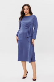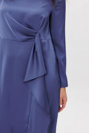 Несмотря на то, что мода постоянно претерпевает изменения, атласные платья всегда остаются актуальными. Платье из плотной атласной ткани способно придать облику своей обладательницы особый шарм, подчеркнув при этом все соблазнительные изгибы тела и великолепную пластику движения. Платье упрямлённого силуэта с овальным вырезом горловины длины миди, отрезное выше линии талии. Верхняя часть переда с асимметричной драпировкой слева в области талиевой вытачки. Нижняя часть платья с отделочной деталью, мягко спадающей по вертикальному шву в виде мягких складок. Левый передний шов платья - с разрезом по линии низа, что позволяет открыть ножки и сделать образ более интригующим и волнительным. Рукава втачные длинные с локтевыми вытачками, зауженными к линии низа. Застёжка на потайную тесьму - "молнию" в среднем шве спинки. Длина платья по спинке 113 см, длина рукава около 61 см.
