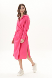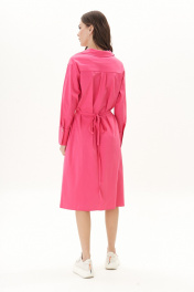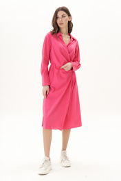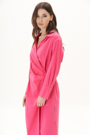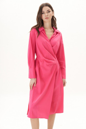 Модель – идеальная для торжественного выхода, да и в принципе для повседневного лука. Конечно же это платье – рубашка с запахом! Оно подходит всем типам фигуры. Лаконичное, но с изюминкой в крое, матовый плотный сатин придает модели пластичность и изысканность. Свободный упрямленный покрой, рубашечный рукав, воротник на V-образном вырезе. Полочка отрезная по линии талии, лиф с нагрудной вытачкой и запахом, в боковой шов вставлена отделочная отлетная деталь со складками и поясом. Спина с отрезной кокеткой и мягкой бантовой складкой. Рукав с отделочной патой. Длина платья около 102 см Длина рукава около 48 см