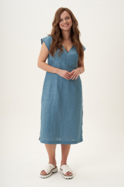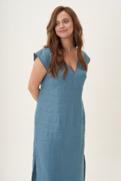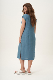 Льняное платье с V-образным вырезом и боковыми разрезами Fantazia Mod 4524 бирюза