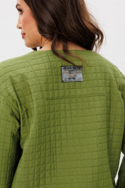 Если в одежде ты ценишь комфорт и практичность, то жакет и юбка миди из тонкого стеганого полотна – прекрасный вариант для привлекательного лука на каждый день. Ведь каждую вещь из данного комплекта можно носить независимо друг от друга. Свободный жакет упрямленного силуэта со слегка заниженной линией плеча, рукав втачной, слегка расширенный в верхней части, застежка центральная на петли и пуговицы. Полочка с накладными карманами. По краю борта, низкам рукавов, карманам и низу изделия – отделочная тесьма. Юбка А-образного силуэта, четырехклинка, на эластичном поясе с застежкой в боковом шве и эффектной шлицей спереди. Длина юбки около 70 см. Длина жакета около 52 см. Длина рукава с плечом около 73 см.