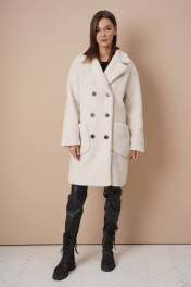 Самой подходящей одеждой для прохладного времени года считается пальто. Оно элегантное, женственное и очень демократичное. Свободный рубашечный покрой, слегка заниженная линия плеча, большой английский воротник, двубортная застежка. Интересно также необычное расположение накладных карманов. Длина рукава около 62 см. Длина изделия около 82 см.