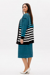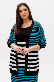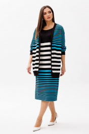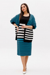 Трикотажный комплект - это модное решение для гардероба в стиле кежуал. Вместо классического тандема с юбкой, выбираем более расслабленный с платьем и кардиганом, плюс оригинальная многоцветная полоска, и не скучный современный "look" готов. Платье упрямлённого силуэта, с отрезной кокеткой по полочке и спинке. Кокетка из эластичного кашкорсе. Кардиган свободного силуэта с заниженной линией плеча, рукавом расширенным в области оката. По низу рукава, кардигана и краю борта отделочное кашкорсе. Длина платья около 107 см. Длина кардигана около 78 см. Длина рукава с плечом около 74 см.