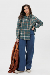 Умеренная небрежность, комфорт, лаконичность и отсутствие стереотипов - правило, позволяющее отказаться от неудобных костюмов и чувствовать себя в таком looke на высоте! Свободный оверсайз свитшот из уютного хлопкового футера и комфортные брюки в расслабленном стиле из хлопкового эластичного джинса ""Тиффани"". Покрой - рубашечный, с заниженной линией плеча. Полочка - с авторским принтом. По низу рукава - манжет, по низу изделия - кулиса с регулирующей тесьмой и фиксаторами. Брюки на эластичном поясе, с наклонными боковыми карманами и защипом-кантом по передним половинкам. Длина свитшота около 64 см. Длина рукава с плечом около 74 см. Длина брюк около 102 см.