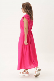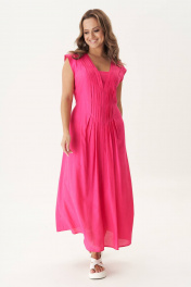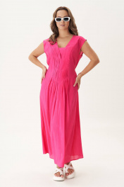 Платье, которое дарит Вам свободу, элегантность, уверенность, позволяя выразить себя. Яркость оттенка вашего образа играет ключевую роль. Лаконичный крой максимально подчёркивает женственность. Свободный А-силуэт с заниженной линией плеча, V-образный глубокий вырез со вставкой. Полочка со средним швом и складками-защипами ниже уровня талии. По складкам - фиксирующие декоративные строчки. Спинка со средним швом. В боковые швы вставлен пояс, который подчёркивает линию талии, завершая образ. Длина платья около 132 см.