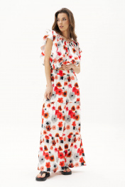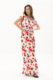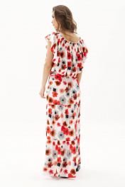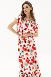Летний сезон - это всегда романтика, приключения, игривое настроение и мир моды погружает нас в это состояние, радуя очередными новинками. Невероятно комфортный, лёгкий комплект с юбкой и блузой. Юбка А-образного силуэта, состоит из трёх горизонтальных воланов с лёгкой сборкой и на эластичном поясе. Блуза свободная с вертикальными рельефами, рукавом-крылышко, эластичными буфами по линии горловины и эластичной тесьмой по низу. Длина юбки около 90 см, Длина блузы около 52 см. Длина рукава около 15 см