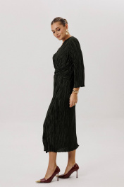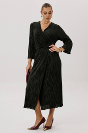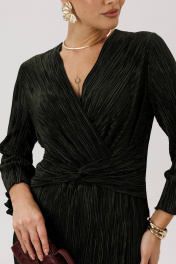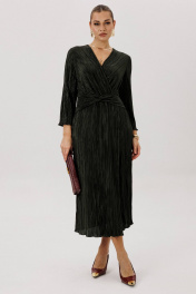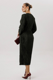 Очарование и красота девушки любого возраста засияют еще ярче, если выбрать для нарядного образа изысканное вечернее платье. Темно-зеленый цвет-фаворит сезона 2024-2025 года. Женственный силуэт, подчеркивающий линию талии, и невероятная фактура гофрированного полотна делают эту модель не только изысканно-красивой, но и мега удобной. Полуприлегающий силуэт, втачной покрой, рукав длиной 7/8, отрезной лиф с запахом, юбка с запахом по переднему полотнищу. По линии талии по переду акцентная драпирующаяся деталь-перевертыш. По линии талии на спинке-эластичная тесьма. Длина платья около 120 см. Длина рукава около 52 см.