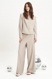 Костюмный тренд - это максимум стиля и практичности, особенно если носить их в неформальной обстановке. Это настоящий casual-шик, который легко трансформируется в вечерний образ. Жакет из необычного по текстуре материала с вкраплением пайетки, брюки из полотна без пайетки. Полуприлегающий силуэт пиджака с центральной застёжкой, круглым вырезом горловины и втачным покроем. Полочка с фигурным рельефом, спинка с фигурным рельефом, центральным швом и плечевыми вытачками. Рукав двухшовный. Длина жакета около 54 см. Длина рукава около 62 см. Фурнитура может отличаться от фото. На фото с юбкой артикул 5003 и брюками артикул 4980.