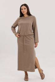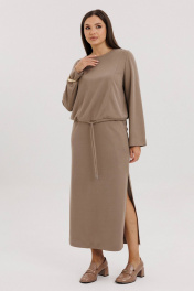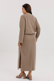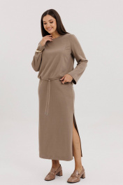 Трикотажный костюм по праву занимает лидирующие позиции на модных осенних улицах и, конечно же, у нас в гардеробе. Он практичен и удобен. Свободный джемпер упрямлённого силуэта, втачного покроя с регулирующей кулисой по низу. Полочка с боковым вертикальным рельефом. Спинка с вертикальным рельефом, средним швом и застёжкой на отелочную молнию. Рукав с цельнокроеной манжетой. Юбка макси, на притачном эластичном поясе, с наклонными боковыми карманами и эффектным разрезом сбоку. Длина джемпера около 57 см, длина рукава около 58 см. Длина юбки около 90 см.