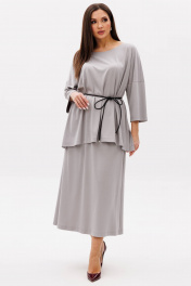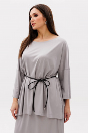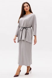 Женский костюм с юбкой. Он сочетает в себе элегантность и практичность. В этом сезоне в тренде юбочные костюмы с максимальной длиной юбки. А в комплекте со свободной блузой-отличный вариант для стильного образа. Свободная блуза сложного комбинированного покроя с фигурным низом и эффектными разрезами. Рукав длиной 3/4. Юбка-рыбка, на эластичном поясе, с застежкой на потайную молнию в боковом шве. Модель дополнена кожаным поясом-шнуром. Длина юбки около 95 см. Длина рукава с плечом около 60 см. Длина блузы около 75 см.