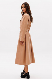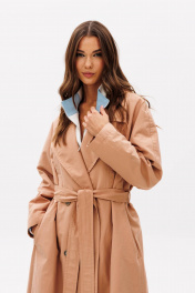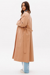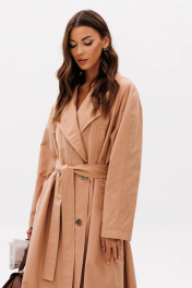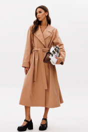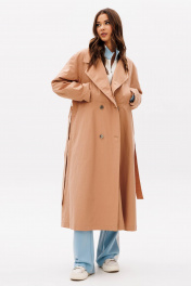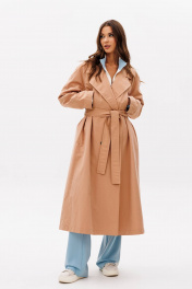 Тренчкот не выходит из моды с тех пор, как Коко Шанель представила этот вид одежды в женской, ведь до этого тренч являлся исключительно мужской одеждой. Сегодня этот вид плаща можно смело назвать базовым, его актуальность переходит из сезона в сезон. Классический вариант тренча покроя реглан в удлинённом варианте с поясом, отложным расширенным пиджачным воротником, встречной складкой по спинке, подрезом по переду и двубортной застёжкой. Полочки с боковыми карманами в рельефе и прорезными листочками в верхней части. Все фигурные линии отделочных деталей подчёркнуты широкими отделочными строчками. В качестве фурнитуры выбраны стильные пуговицы. Плащ на отлетной по линии низа подкладке. Длина изделия по спинке около 120 см. Длина рукава с плечом около 75 см