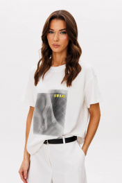 Базовые футболки - это конечно хорошо, но что делать, если хочется привнести в образ яркости, иронии и немного артистизма? Лучший способ выразить себя - выбрать вариант с классным говорящим принтом. Футболка классического кроя с втачным рукавом. Длина футболки около 60 см. Длина рукава около 15 см.