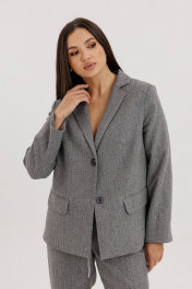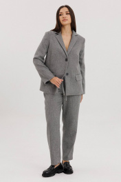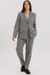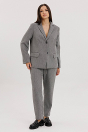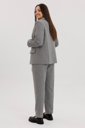 Стильный образ - это главный принцип современной моды. Уверенно и неординарно - так мы должны себя чувствовать в хорошей одежде, а лучшим помощником для создания лука станет брючный костюм. Комплект 2-х предметный. Силуэт свободный, слегка упрямлённый, покрой-втачной, воротник классический английский, линия борта фигурная, застёжка на две петли и пуговицы. Полочка с отрезным бочком, нагрудной вытачкой и прорезным карманом с клапаном. Спинка со средним швом и талиевой вытачкой. Рукав двухшовный с отлетной шлицей и отделочными пуговицами. Брюки свободные, на эластичном поясе с люверсами и отделочным шнуром. Передние половинки с боковыми накладными карманами. Длина пиджака около 67 см, длина рукава около 60 см. Длина брюк около 98 см