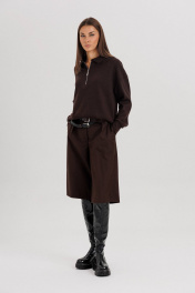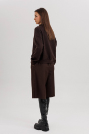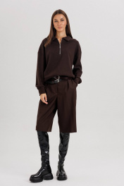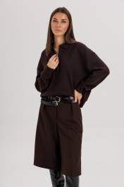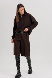 Комплект невероятно комфортный, в самом трендовом цвете сезона. Джемпер из трикотажа. Это одна из базовых вещей осенне-зимнего сезона. Он тёплый, удобный и невероятно комфортный. К тому же, настолько универсален, что его можно стилизовать абсолютно разными способами. Свободный покрой с заниженной линией плеча, рукав рубашечного покроя на отрезной манжете, воротник классический, по центру полочки частичная застёжка-молния. По низу джемпера - отрезной пояс. Бриджи классические, прямые, на отрезном поясе со шлевками, эластичном в области спинки. Передние половинки с талиевыми вытачками и наклонными боковыми карманами. Задние полоаинки с талиевыми вытачками и прорезным карманом с листочкой. Пояс в комплект не входит. Длина бридж около 55 см.