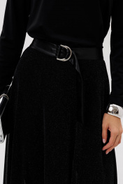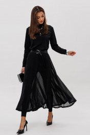 Этот комплект-тройка воплощает гармонию комфорта и праздничной элегантности. Базовый лонгслив и облегающие легинсы создают мягкую, аккуратную основу силуэта, позволяя главной звезде ансамбля — эффектной юбке-солнце — раскрыться во всей красоте. Юбка выполнена из воздушной мерцающей сетки, которая красиво ловит свет при каждом движении, создавая по-настоящему нарядное, торжественное настроение. Лёгкое сияние ткани добавляет образу утончённости, а отделочный пояс из экокожи акцентирует талию и придаёт современной графичности. Такой комплект станет идеальным решением для особых случаев — от вечерних мероприятий до стильных праздничных выходов. Он выглядит эффектно, дорого и женственно, сохраняя при этом абсолютный комфорт — идеальный баланс для современной модницы.