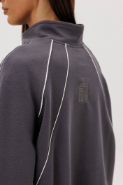 Современный костюм в стиле спорт-кэжуал — идеальный баланс комфорта и актуального дизайна. Модель выполнена из мягкого трикотажного полотна с добавлением хлопка, обеспечивающего приятные тактильные ощущения и свободу движений. Джемпер покроя реглан с аккуратной стойкой и застёжкой-молнией украшен контрастными кантами, придающими образу динамику. Брюки со слегка зауженным силуэтом и манжетами по низу дополнены эластичным поясом для удобной посадки. Костюм легко интегрируется в повседневный гардероб — от прогулок до путешествий и отдыха в городе.