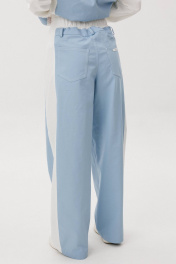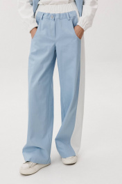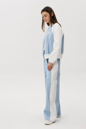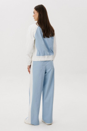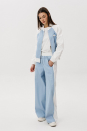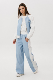 Эффектный брючный комплект в нежном оттенке «Тиффани» — современное прочтение casual-стиля с акцентом на комфорт и актуальный силуэт. Свободный крой и мягкие линии создают расслабленный, но продуманный образ для динамичного городского ритма. Детали модели: Широкие брюки с высокой посадкой и мягкой линией талии Объемный силуэт, визуально вытягивающий фигуру Легкая куртка на молнии с контрастными белыми рукавами Минималистичная отделка и функциональные карманы Комплект выполнен из качественного хлопчатобумажного полотна. Натуральная ткань обеспечивает воздухопроницаемость, комфорт и приятные тактильные ощущения. Материал держит форму, при этом остается легким и удобным в носке. Широкие брюки придают образу трендовую выразительность и свободу движений, а свежий голубой оттенок добавляет легкости и визуальной чистоты. Комплект легко комбинируется с базовыми футболками, топами и кедами, создавая стильные повседневные образы. Преимущества: Натуральный хлопковый состав Актуальный oversize-силуэт Комфортная посадка Универсальность для повседневного гардероба Брючный комплект ""Tiffany"" с широкими брюками — это гармония стиля, удобства и актуальных трендов. Идеальный выбор для тех, кто ценит свободу и элегантность в деталях.