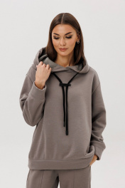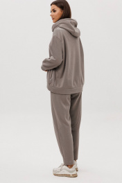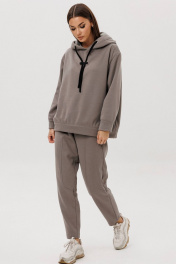 Уютный костюм из тёплого хлопчатобумажного футера с мягким начёсом «барашек» — идеальное сочетание комфорта и современного стиля. Объёмный худи с капюшоном и контрастным шнуром создаёт расслабленный силуэт, а брюки со слегка зауженным кроем и декоративными строчками добавляют образу актуальности. Материал приятен к телу, хорошо держит форму и дарит ощущение тепла даже в прохладную погоду. Этот костюм подойдёт как для прогулок и путешествий, так и для уютных домашних выходных.