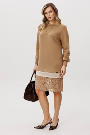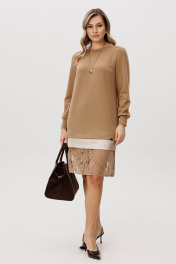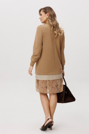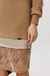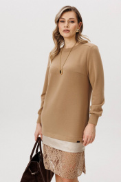 Элегантное платье, сочетающее комфорт и утончённый женственный акцент. Модель выполнена в лаконичном силуэте с длинным рукавом и мягкой линией плеч, что обеспечивает удобную посадку и универсальность в носке. Чистый верх подчёркивает минимализм дизайна и делает образ аккуратным и собранным. Нижняя часть платья дополнена декоративной вставкой из кружева, которая добавляет образу изящества и визуальной лёгкости. Контраст фактур создаёт эффект многослойности и делает модель выразительной без излишней декоративности. Платье отлично подойдёт для повседневных и офисных образов, а также для встреч и выходов в город, легко сочетаясь с классической обувью и аксессуарами.