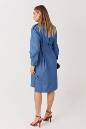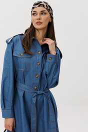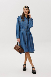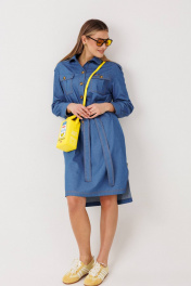 Стильное платье прямого силуэта в рубашечном покрое выполнено из мягкого хлопкового плательного денима средней плотности. Материал приятен к телу, хорошо драпируется и обеспечивает комфорт в течение всего дня. Продуманные детали делают модель особенно удобной и универсальной: прямой силуэт аккуратно выравнивает пропорции и подходит разным типам фигуры; спинка со встречной складкой добавляет свободу движения; настрочная широкая кулиса подчёркивает линию талии; мягкие складки формируют лёгкий объём и придают образу динамику. Платье легко впишется в повседневный гардероб: сочетайте его с кедами или кроссовками для расслабленного городского образа, либо дополните босоножками или обувью на каблуке для более женственного акцента. Универсальная модель, в которой комфорт сочетается с актуальным дизайном.