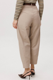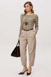 Костюм с жилетом - прекрасное решение для смелых экспериментов. Жилет полуприлегающего силуэта с асимметричной застёжкой, фигурной линией низа и регулирующийся кулисе по спинке. Полочки с отрезным бочком и нагрудными вытачками, спинки - с центральным швом, отрезным бочком и регулирующийся кулисой с фиксаторами. Брюки "баррел" на притачном поясе со шлёвками (эластичном в области спинки), с наклонными карманами , мягкими складками защипами по верху брюк и вытачками по низу. Джемпер с длинным рукавом, полуприлегающего силуэта.