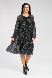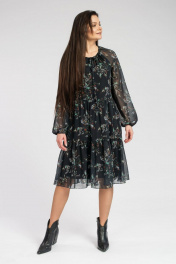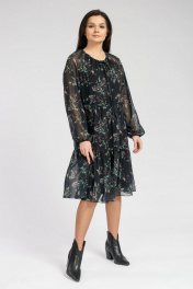Миди шифоновое платье с воланами и собранной горловиной FASHION CENTRE П-3625 черный
