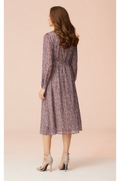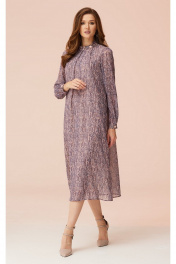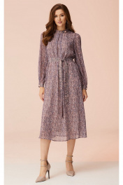 Свободное платье из шифона с воротником-стойкой и поясом Faufilure C1492 розово-фиолетовый