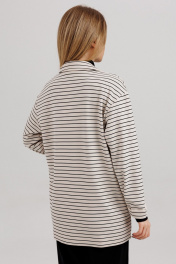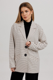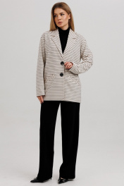 Жакет с застежкой на петли и пуговицы. Передние полочки на подкладке. По полочкам жакета расположены прорезные карманы с листочкой. Вырез горловины:воротник с отложными лацканами Дина рукава: от горловины- 72см, рукав спущенный Длина жакета по спинке- 69см