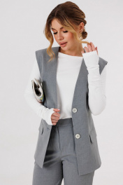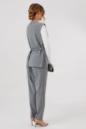 Брючный комплект-двойка - жилет и брюки. Жилет на подкладке, застегивается на пуговицы. Карманы жилета с клапанами. Брюки слегка зауженные книзу, с карманами.