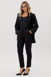 Комплект брючный, состоит из жакета и брюк. Жакет оверсайз, на подкладке.Застегивается на одну пуговицу. Рукав втачной. Брюки средней посадки, с карманами. Пояс частично на резинке.