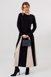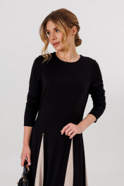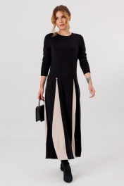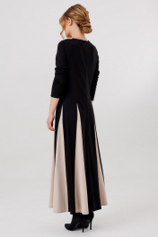 Платье трикотажное, без застежки, с рельефами по полочке и спинке, переходящими в клинья по низу. Рукав втачной. Длина платья по спинке- 130см.